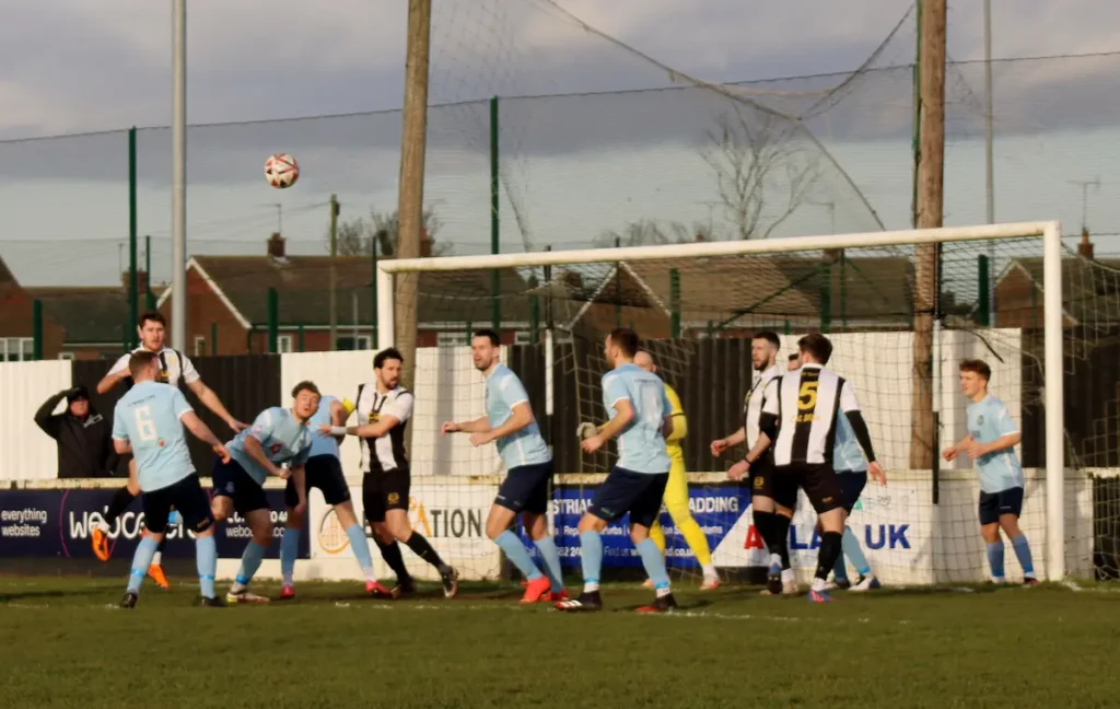 As half time approached, a free kick on the right for Brigg was headed away from the penalty area and Beverley counter-attacked down the right wing to force a corner which the Brigg defence cleared.