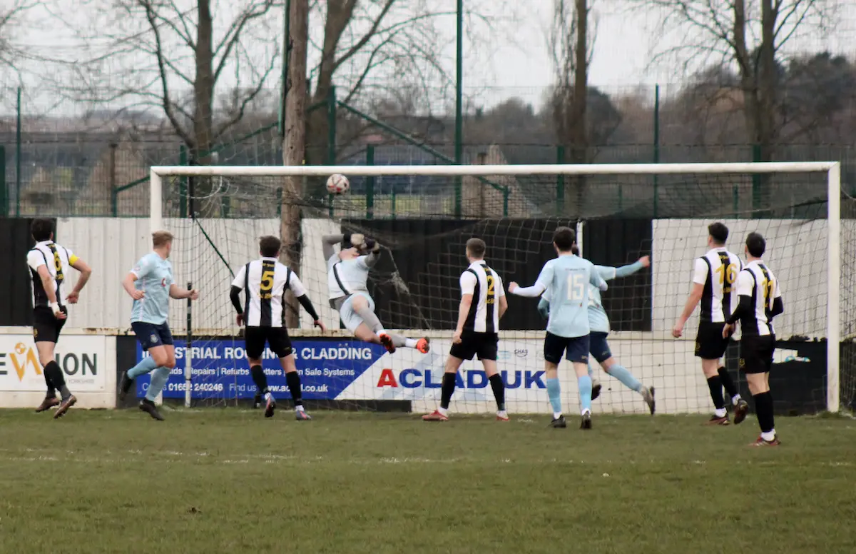 Then, the Brigg ‘keeper had to make a low save from a deflected shot from outside the penalty area.