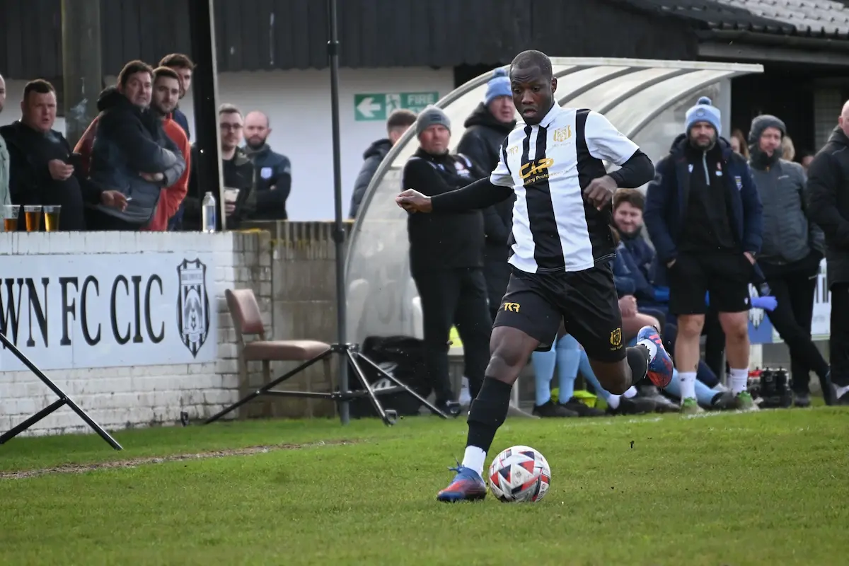 Chas Fisher made an excellent saving tackle at the edge of the penalty area to hold up a penetrating forward move.