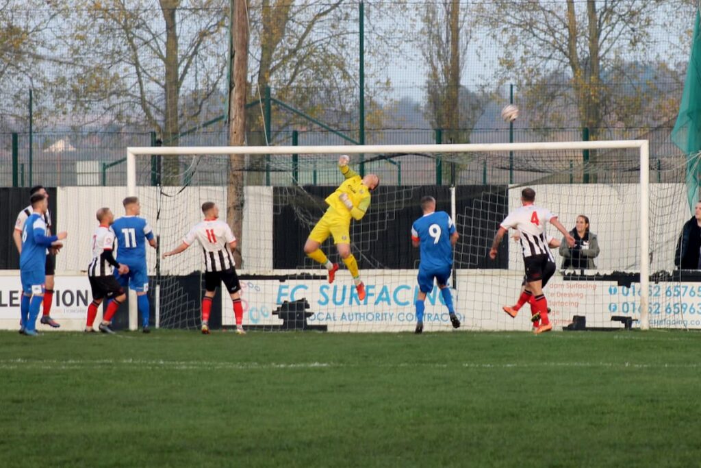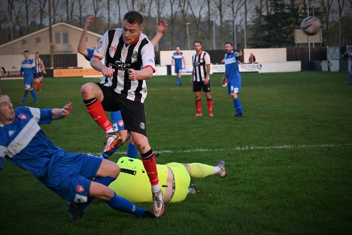 Jordan Latham, the Cheadle goalkeeper, needed treatment for an injury sustained after halting a Brigg attack, whilst another free kick from Hewitt was well defended.