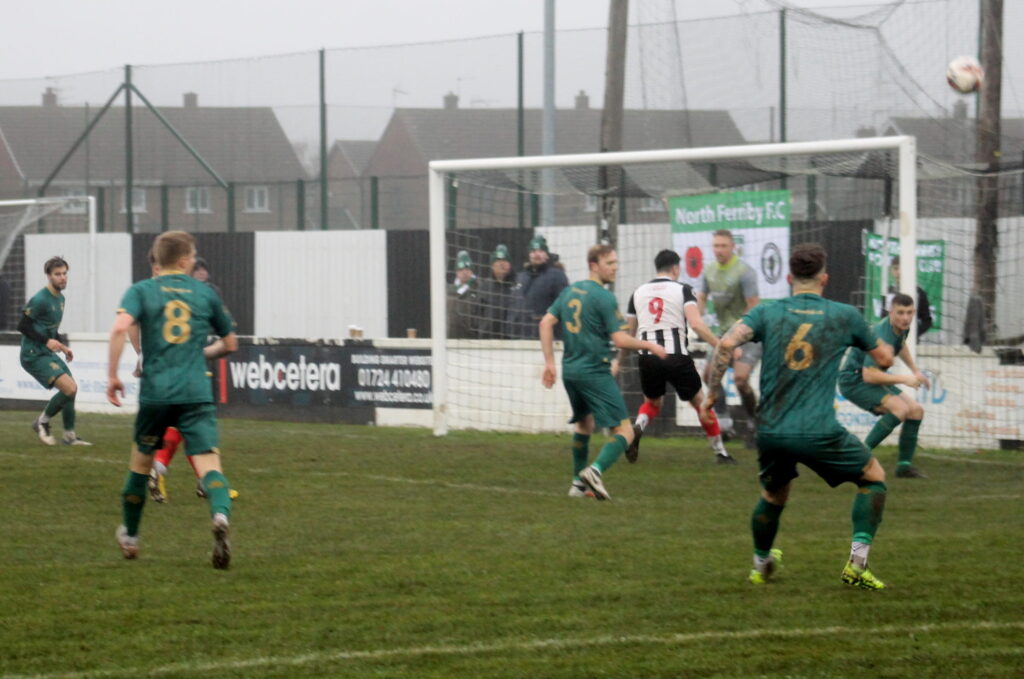 North Ferriby pushed forward more searching for an equalising goal but Brigg ‘keeper David Birch made a great save to preserve the slender lead and the follow-up resulted in the ball striking the frame of the goal.