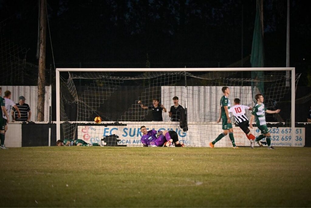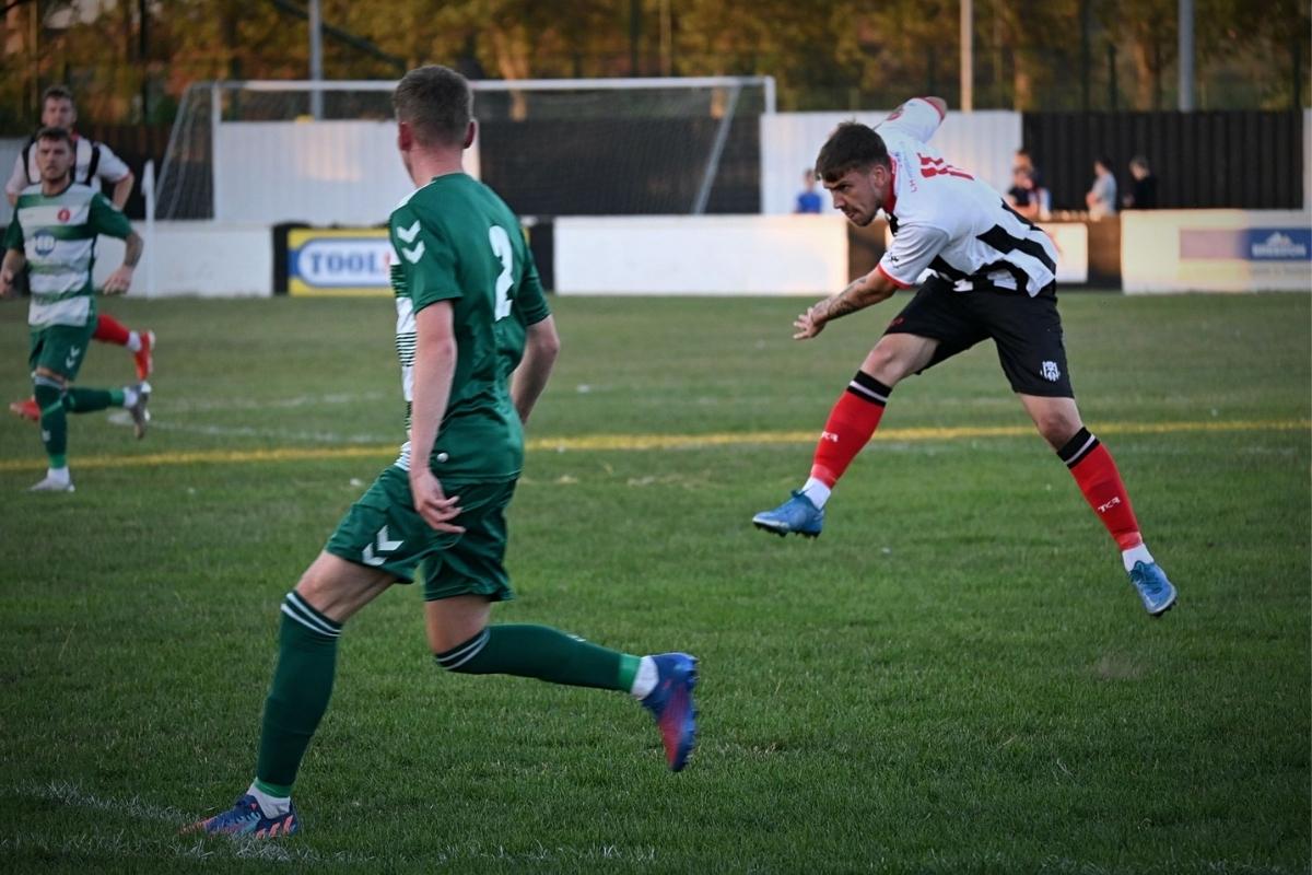 Play was end to end with both sides showing solidity in defending. However, the stalemate was broken when Dronfield worked the ball forward down the right wing and into the penalty area for Samuel Bebbington to find the far top corner of the net with an excellent strike from 15 yards out.