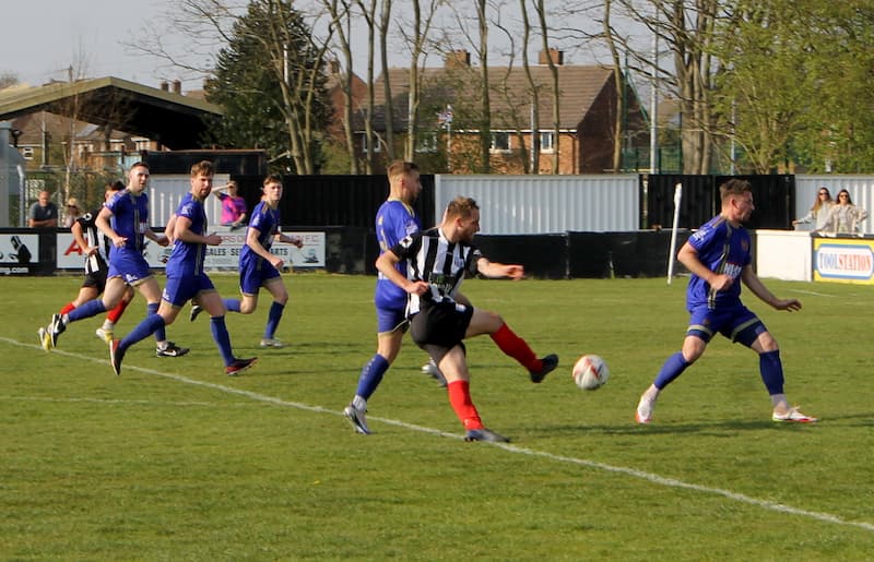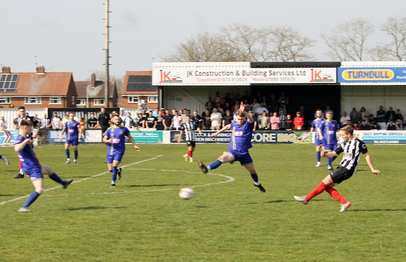 Continuing to press, Finlay O’Sullivan created an opening for Jonathan Oglesby but the ball was run out of play. The ‘Rail’ began to settle to their game plan but a long free kick from Dan Thirkell into the Brigg penalty area ran out of play.