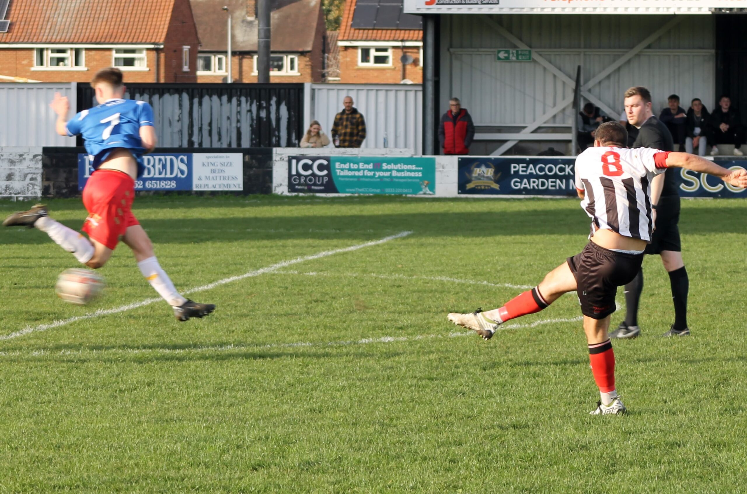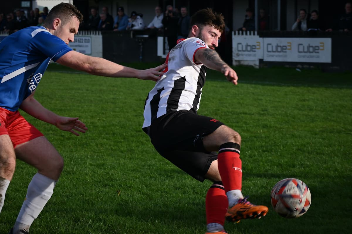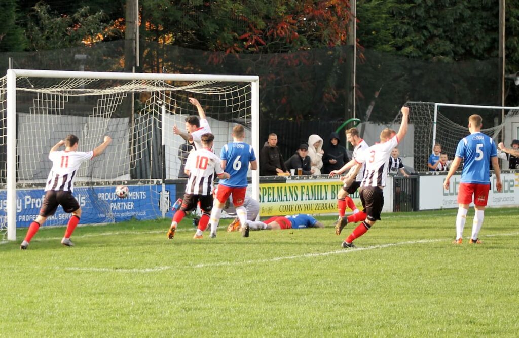 After weathering the storm the Zebras benefited from a moment of misfortune on 26 minutes. Martin Pembleton crashed a free kick onto the underside of the crossbar and Thirkell’s attempted clearance flew into his own goal.