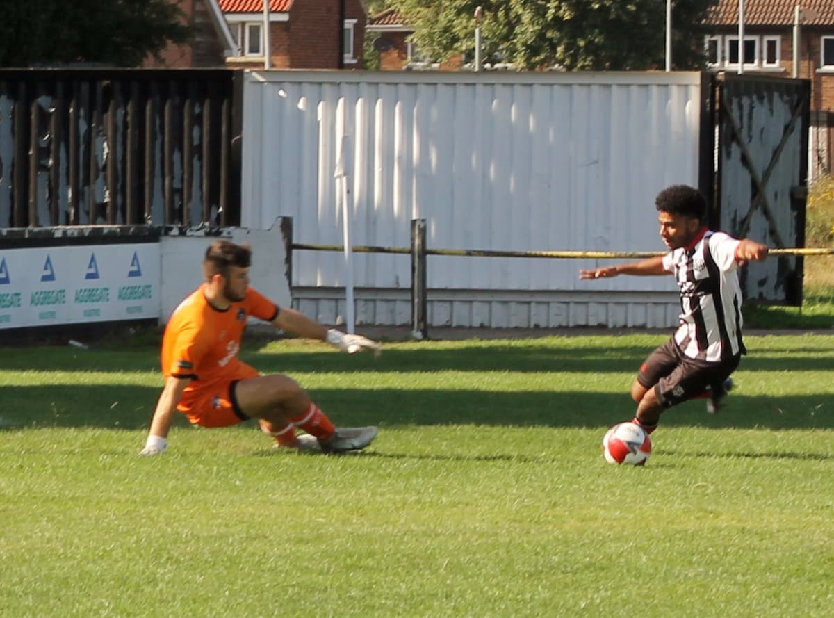 Brigg seized the initiative from the start of the second half with McCarron shooting wide and were rewarded with a goal from Kevan Kahoussi. The youngster latched onto Pembleton’s through ball and rounded Eastham to give the Zebras a 2-1 lead.