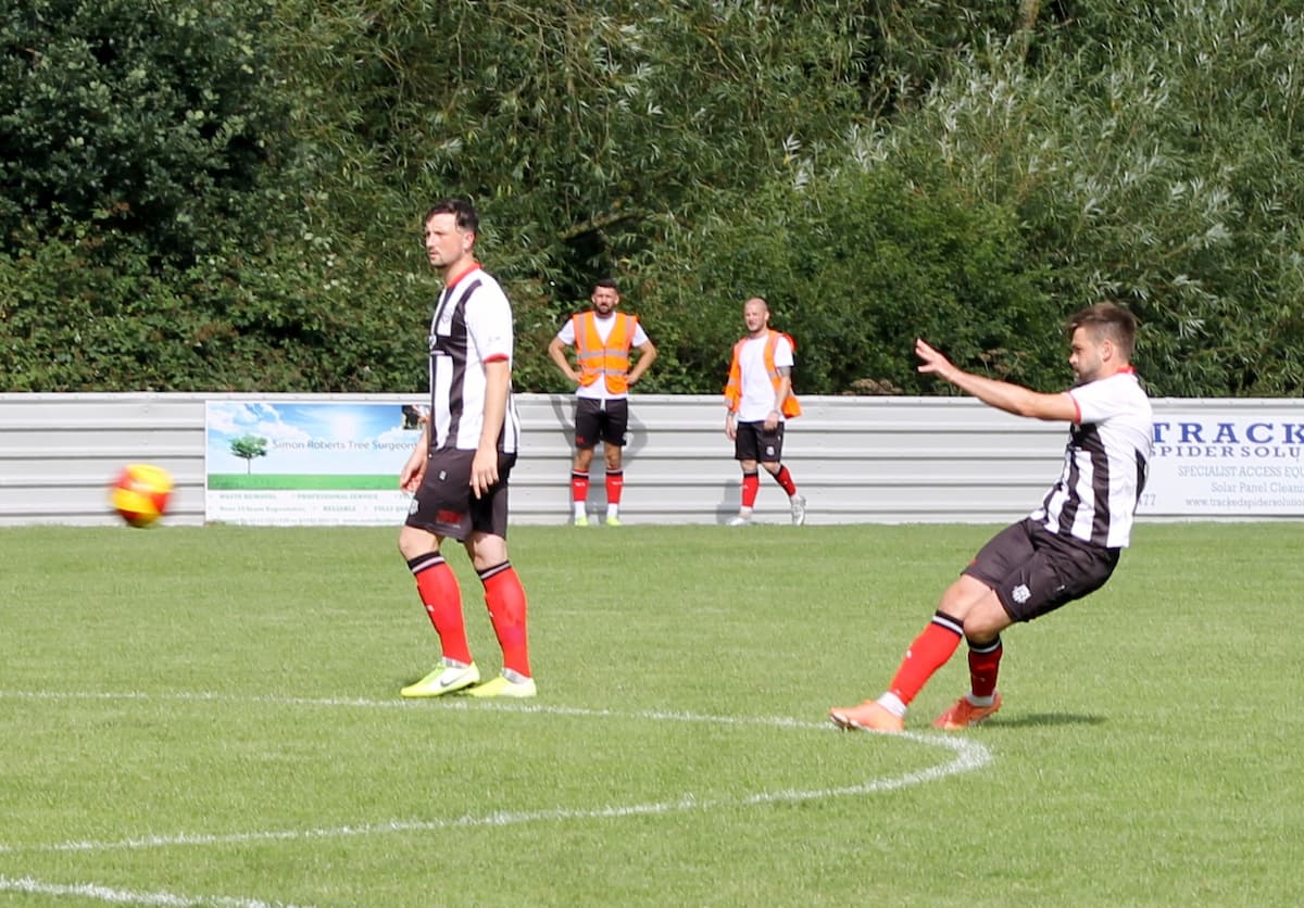 At the other end, Tom Collins produced a great save off a free kick from twenty yards out taken by Nathan Hawkhead after perfectly setting up the defensive wall. Another shot from Joel McFadyen flew over Rhys Westcarr’s goal and just before the half-time interval, Alfie Usher struck a thirty-yard shot against the crossbar but the teams went in level at the break.