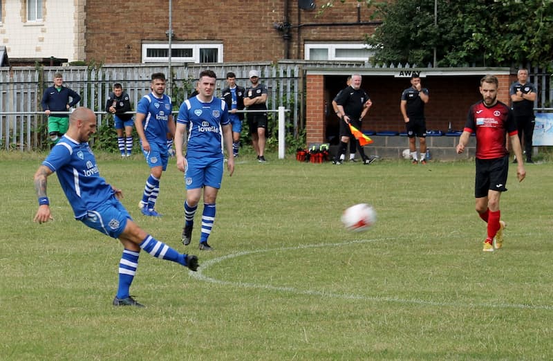 Brigg started to get more of the ball and from their first attack down the left-wing, Martin Pembleton sliced a shot wide of the Ollerton goal. The immediate response came from a free kick mid-way into Brigg’s half but this was too deep and wasted.