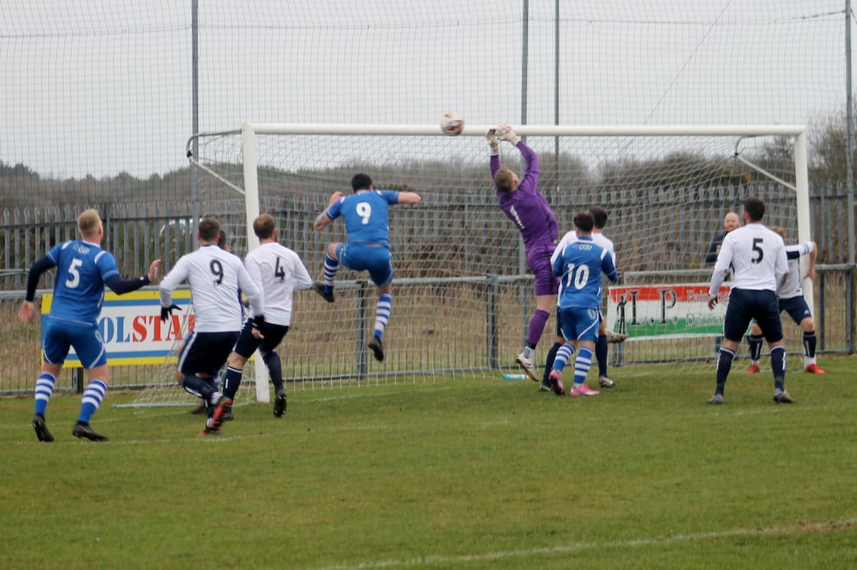 Rainworth continued to press and Josh Smith’s free kick from outside the penalty area was held by David Birch. Curtis Williamson was proving to be the main threat and ran on to a through ball before his strike at goal was blocked. His follow-up went wide of the Brigg goal upright. Another long free kick into the Brigg penalty area was met with a wasted shot well over the crossbar.