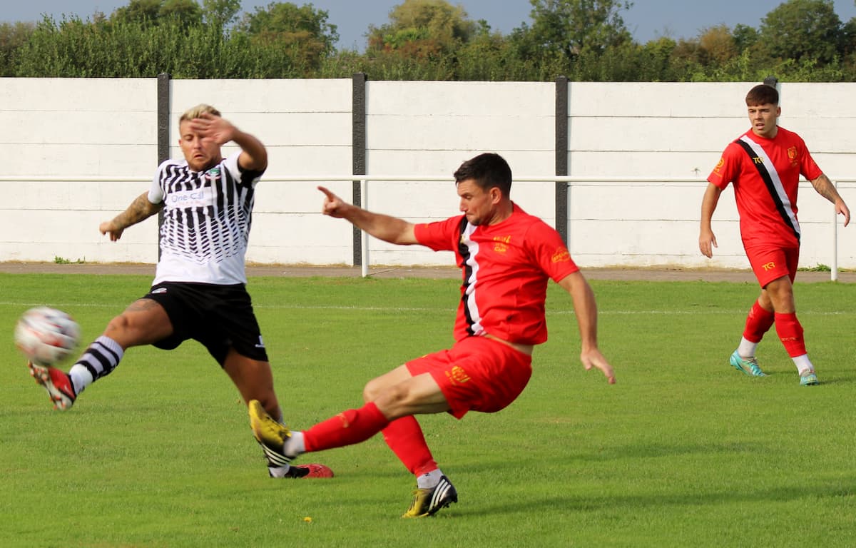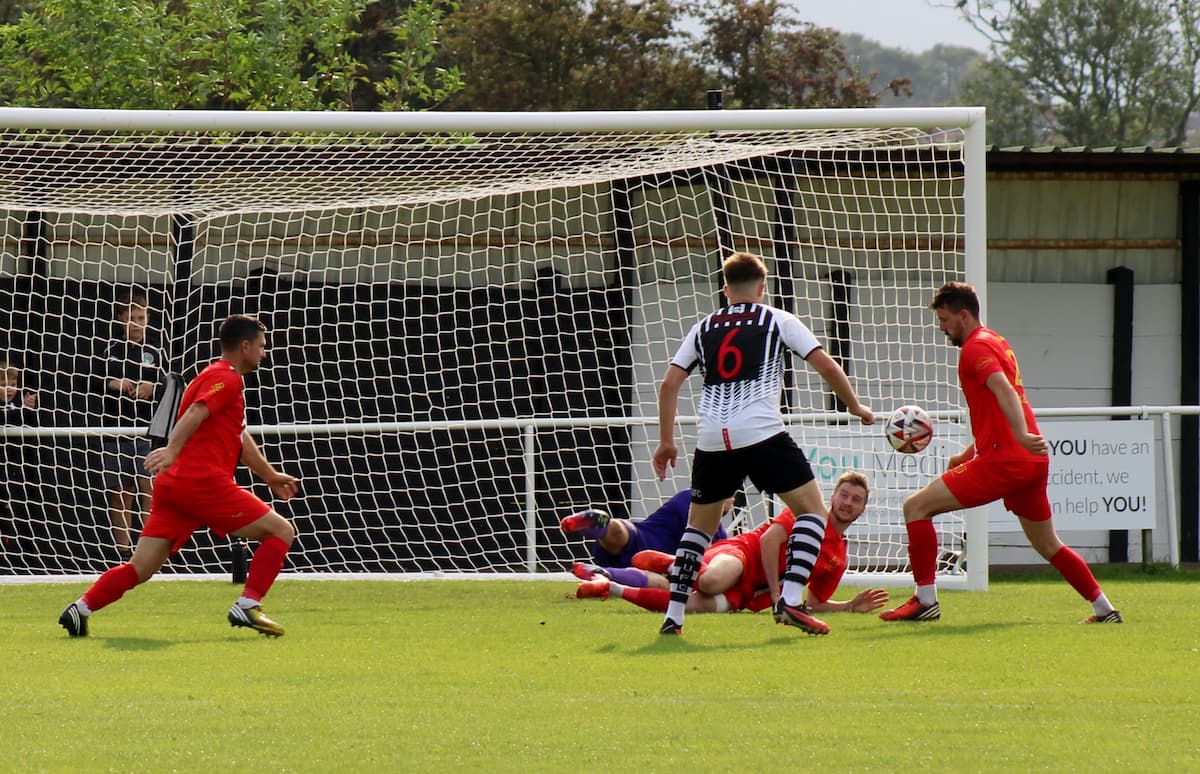 The home team were the first to attack when Owen Fieldsend had a shot cleared from the penalty area and then followed up with another effort going past Miles Fenty’s post.